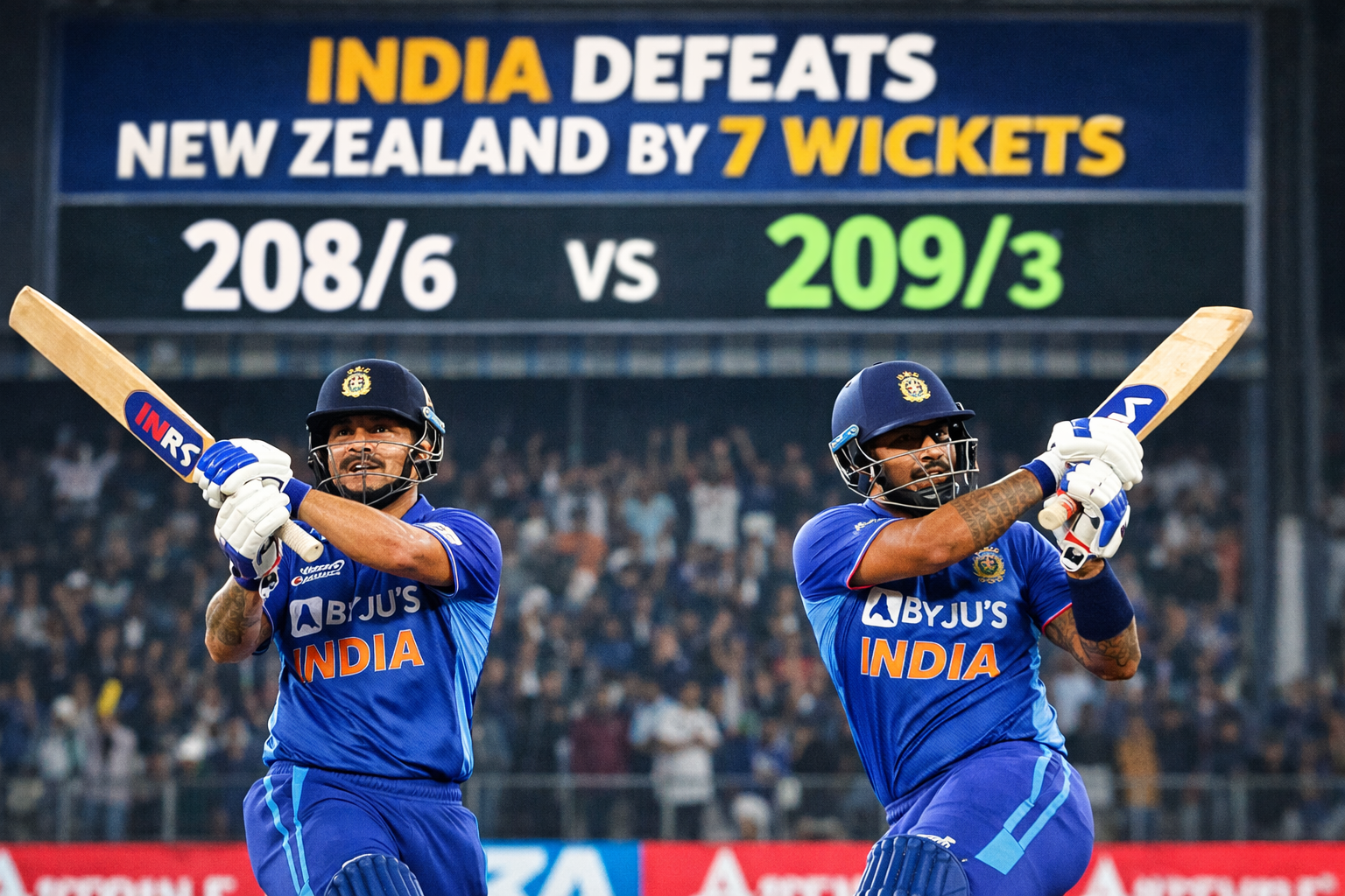 209 रनों के विशाल लक्ष्य का पीछा करने उतरी टीम इंडिया ने शुरुआत से ही आक्रामक रुख अपनाया। ईशान किशन और सूर्यकुमार यादव ने न्यूजीलैंड के गेंदबाजों की एक न चलने दी। ईशान ने जहां ताकत और टाइमिंग का शानदार मिश्रण दिखाया, वहीं सूर्यकुमार यादव ने अपने खास अंदाज में 360 डिग्री शॉट्स से दर्शकों का भरपूर मनोरंजन किया।