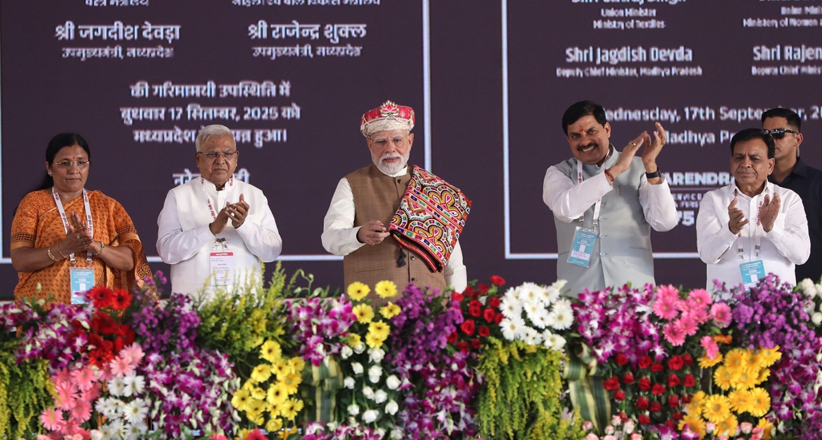 धार, 17 सितंबर : प्रधानमंत्री नरेन्द्र मोदी ने बुधवार को मध्यप्रदेश के धार जिले के ग्राम भैंसोला में देश के पहले ‘पीएम मित्र पार्क’ का शिलान्यास किया और स्वदेशी वस्तुओं की पुरजोर वकालत करते हुए देशवासियों से देश में ही बने सामान खरीदने का आह्वान किया।