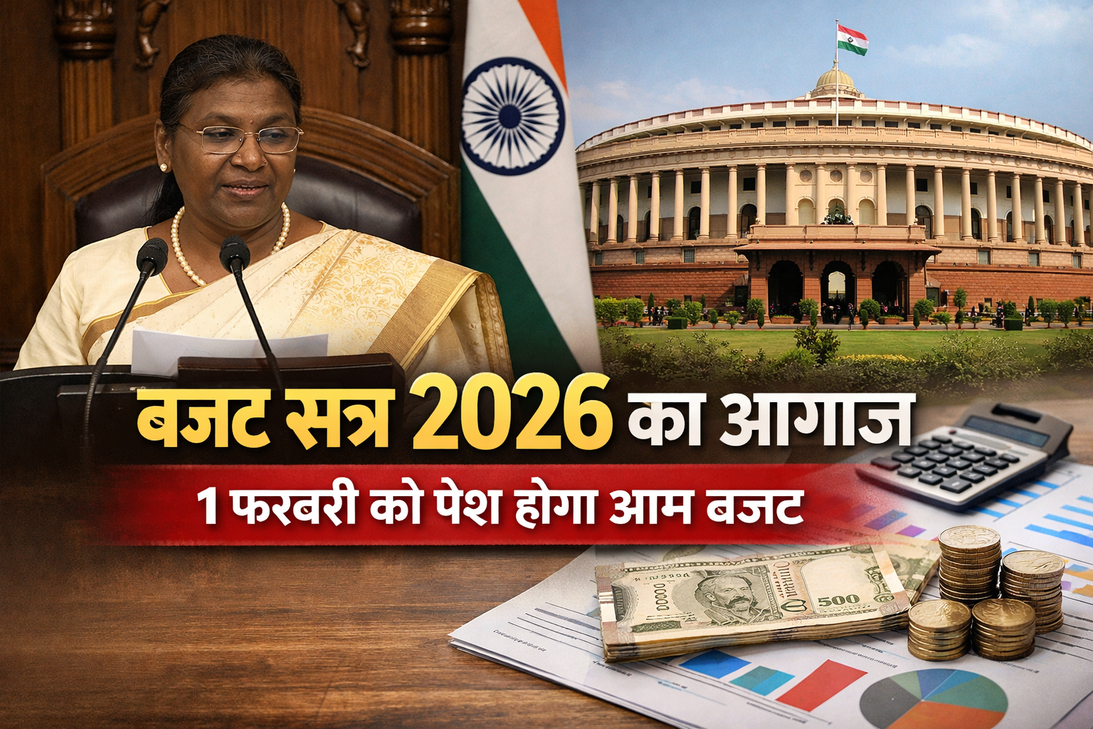 राष्ट्रपति के अभिभाषण के बाद अब सबकी नजरें 1 फरवरी की सुबह 11 बजे पर टिकी हैं, जब वित्त मंत्री देश का आम बजट 2026 लोकसभा में पेश करेंगी। माना जा रहा है कि यह बजट आम आदमी, मध्यम वर्ग, किसानों और युवाओं के लिए कई बड़े ऐलान लेकर आ सकता है।