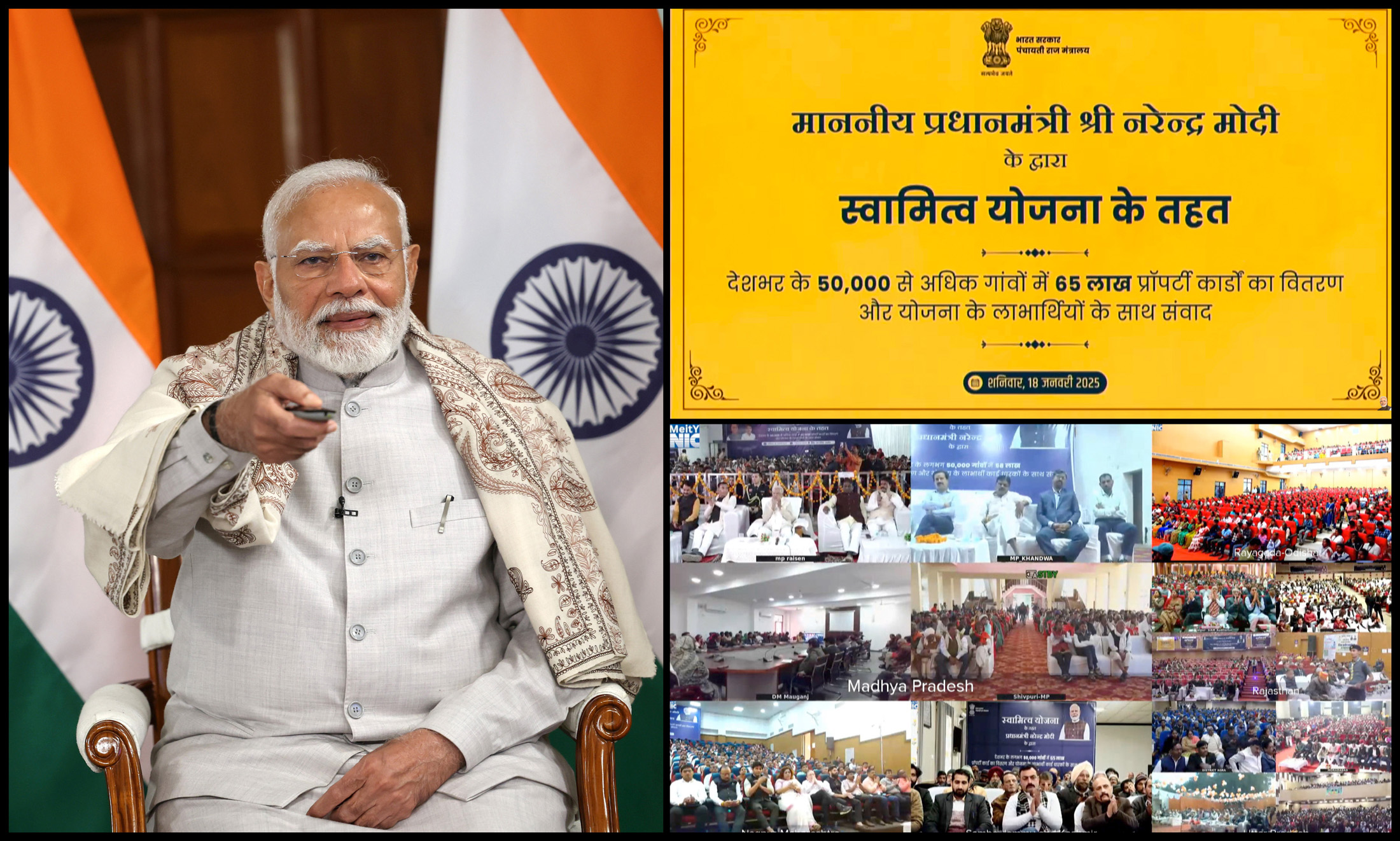 नई दिल्ली, 18 जनवरी: प्रधानमंत्री नरेंद्र मोदी ने स्वामित्व योजना के तहत 65 लाख लाभार्थियों को संपत्ति कार्ड सौंपा। इस दौरान पीएम मोदी लोगों से वर्चुअली मुखातिब हुए और इस योजना की बारीकियां समझाईं।