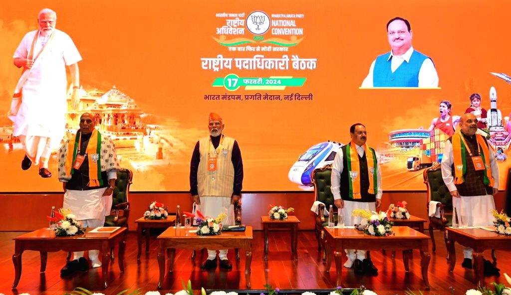 नई दिल्ली, 17 फरवरी: प्रधानमंत्री नरेंद्र मोदी ने शनिवार को भाजपा राष्ट्रीय पदाधिकारी की बैठक को संबोधित करते हुए पार्टी कार्यकर्ताओं से आगामी लोकसभा चुनाव में जीत हासिल करने के लिए अगले 100 दिनों तक कमर कसकर जुट जाने का आह्वान किया है। उन्होंने कहा कि आगामी लोकसभा चुनाव में भाजपा के लिए 370 और एनडीए 400 पार सीटें जीतने का लक्ष्य महज आंकड़ा भर नहीं है, बल्कि 370 सीट जीतकर भाजपा का हर कार्यकर्ता डॉ. श्यामा प्रसाद मुखर्जी के बलिदान को श्रद्धांजलि देगा।